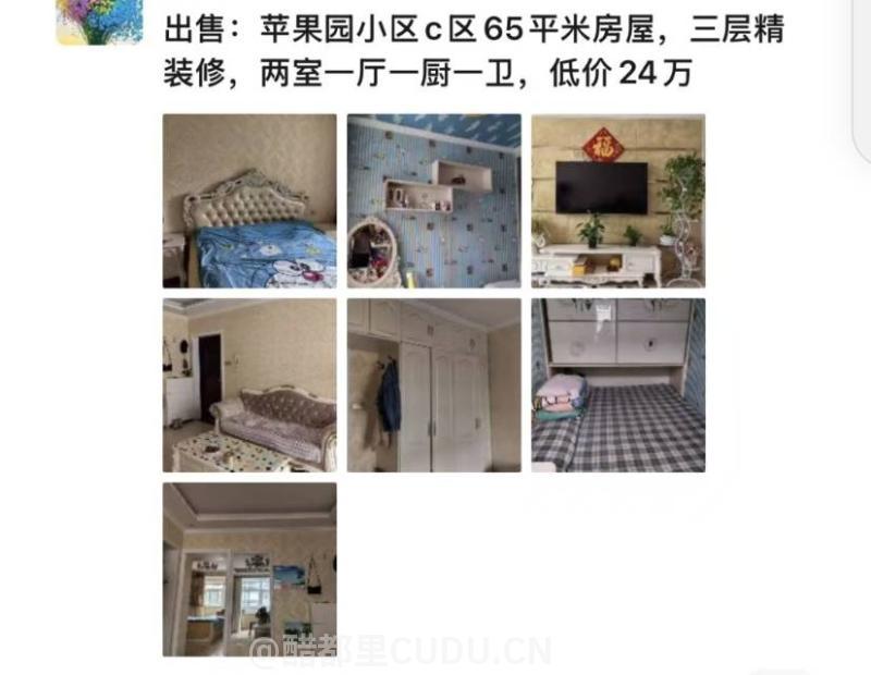 苹果园小区65平米三层楼,两室一厅一厨一卫,精装修南北通透,位置优越,低价24万,有意联系13546372128